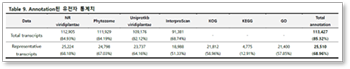 또한 Homology-based 방법은 BLAT과 같은 tool을 이용해 유전체에 어셈블리 서열을 alignment 하여 일정 기준 이상의 homology를 갖는 위치를 예측하고, align된 위치를 유전자의 유전체 내 위치로 예측하는 방법입니다. 이 두 방법의 결과를 잘 결합하여 사용한다면 정제된 유전체의 annotation 정보를 얻을 수 있습니다. 또한 잘 연구된 protein DB과의 서열 유사성을 이용해 Functional annotation 분석을 할 수 있습니다.